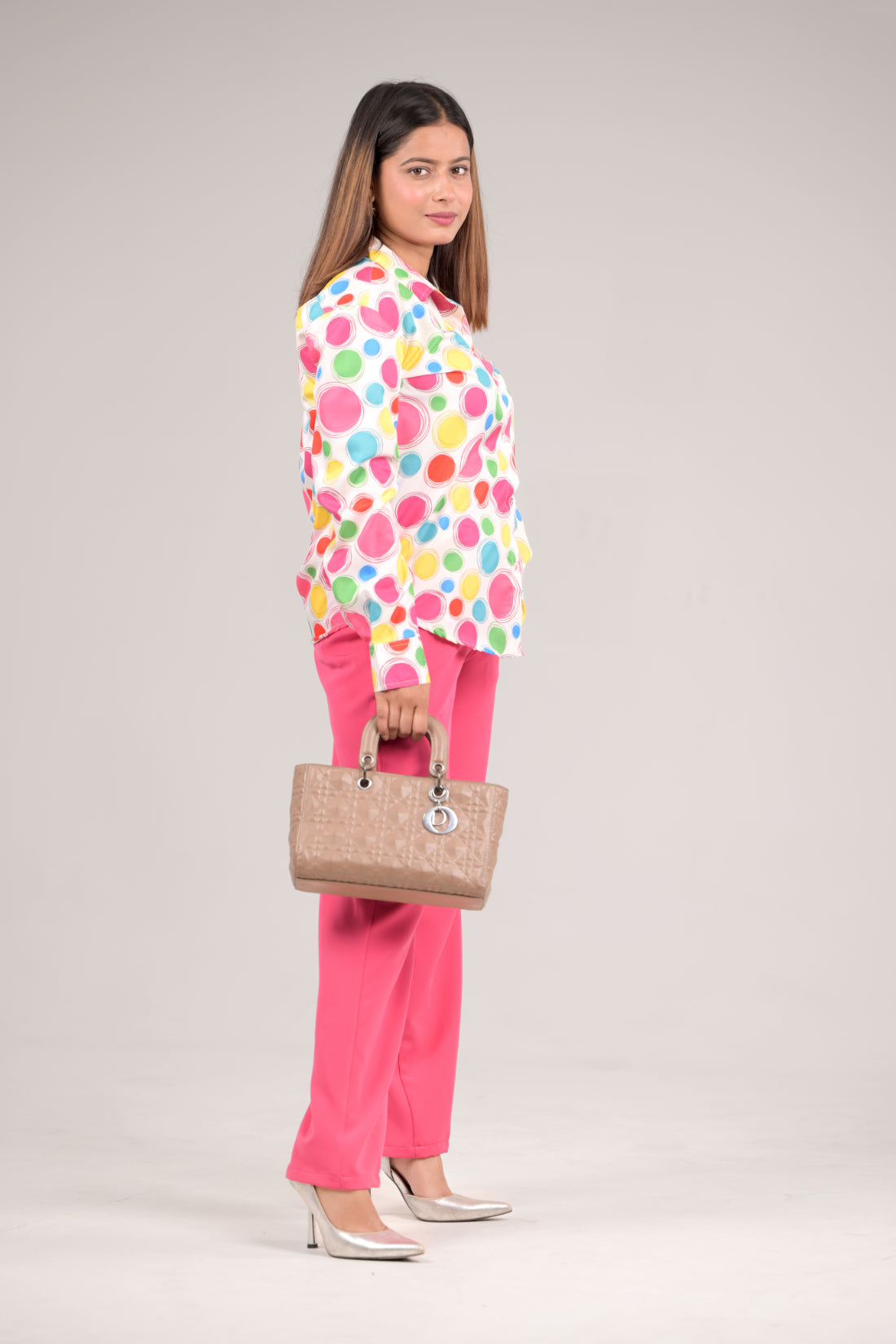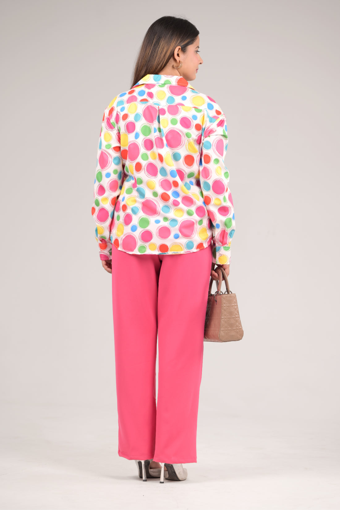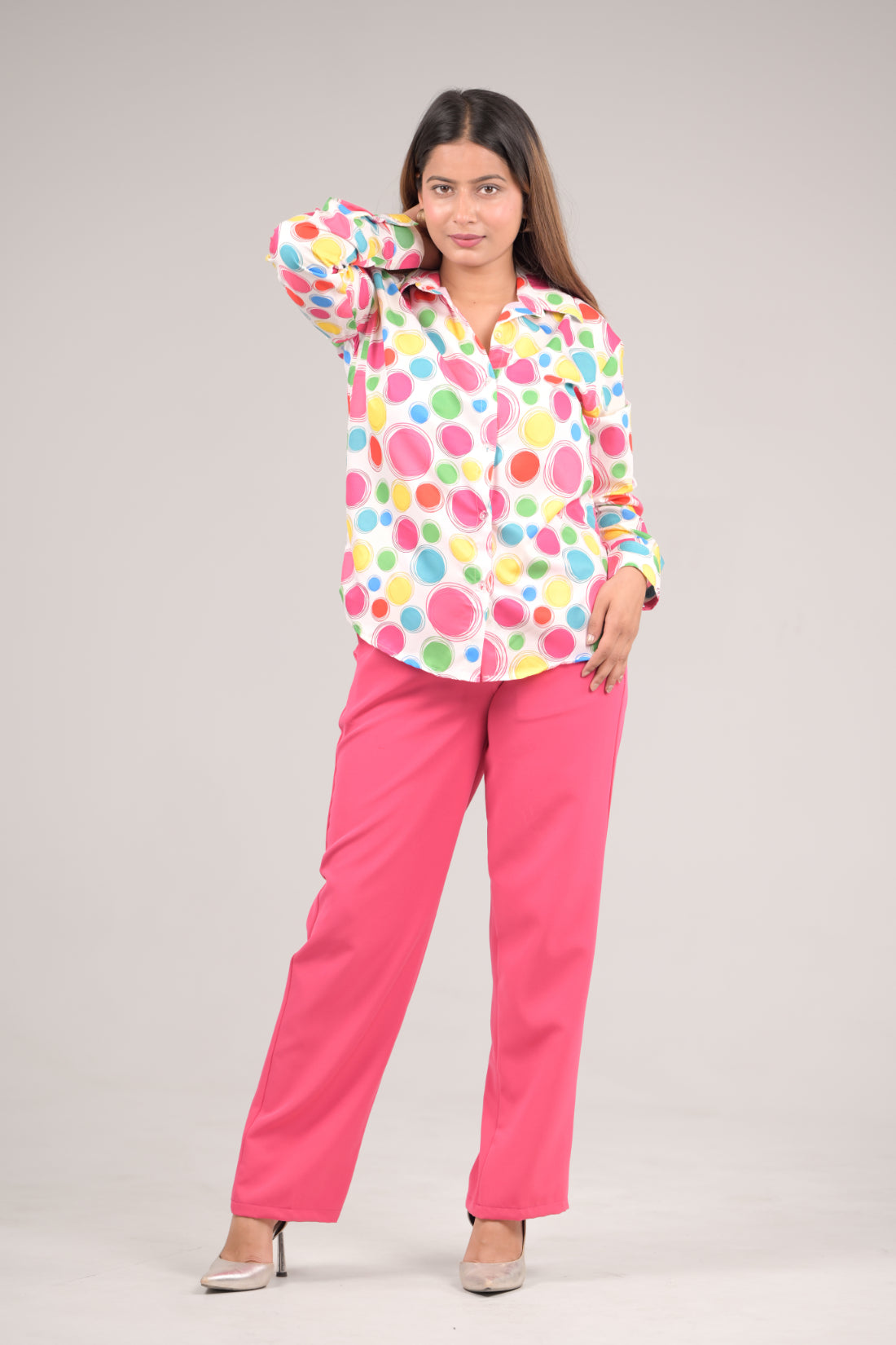 Enhance your wardrobe with this In Any Manner women's shirt and pant set, designed in a multi colour printed with solid Hot Pink Trousers. Shirt is Crafted from a premium Rayon Fabric and trouser is crafted with Premium Polyester , it offers a comfortable fit while ensuring breathability. This stylish piece is perfect for both office meetings and elegant gatherings, seamlessly marrying sophistication with versatility. Elevate your look with this essential addition that exemplifies refined taste and effortless style.